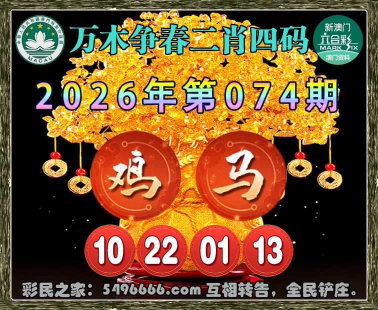 074期:【万木争春】 🤘二肖四码🤘【鸡马】【10.22.01.13】开:00准