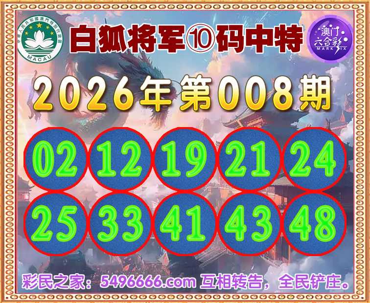 008期:『白狐将军』⑩码中特⌚开:21