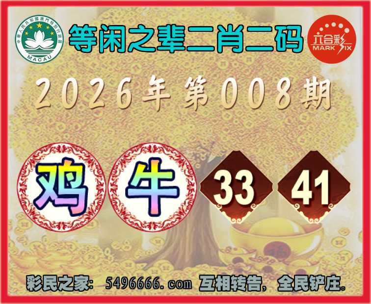 008期: 🎪『等闲之辈』 🎪二肖二码🎪【牛】【33.41】开:鸡21