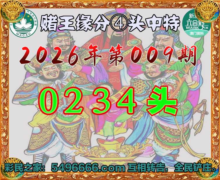 003期:《赌王缘分》 ♦️④头中特♦️【0.2.3.4】开:09准上榜高手