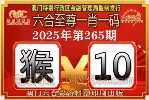 265期:【六合至尊一肖一码【猴-10】开猴10准