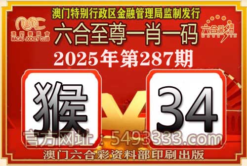 287期:【六合至尊一肖一码【猴-34】开猴34准